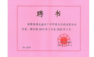 谭文胜总经理被聘广州市重大行政决策论证专家